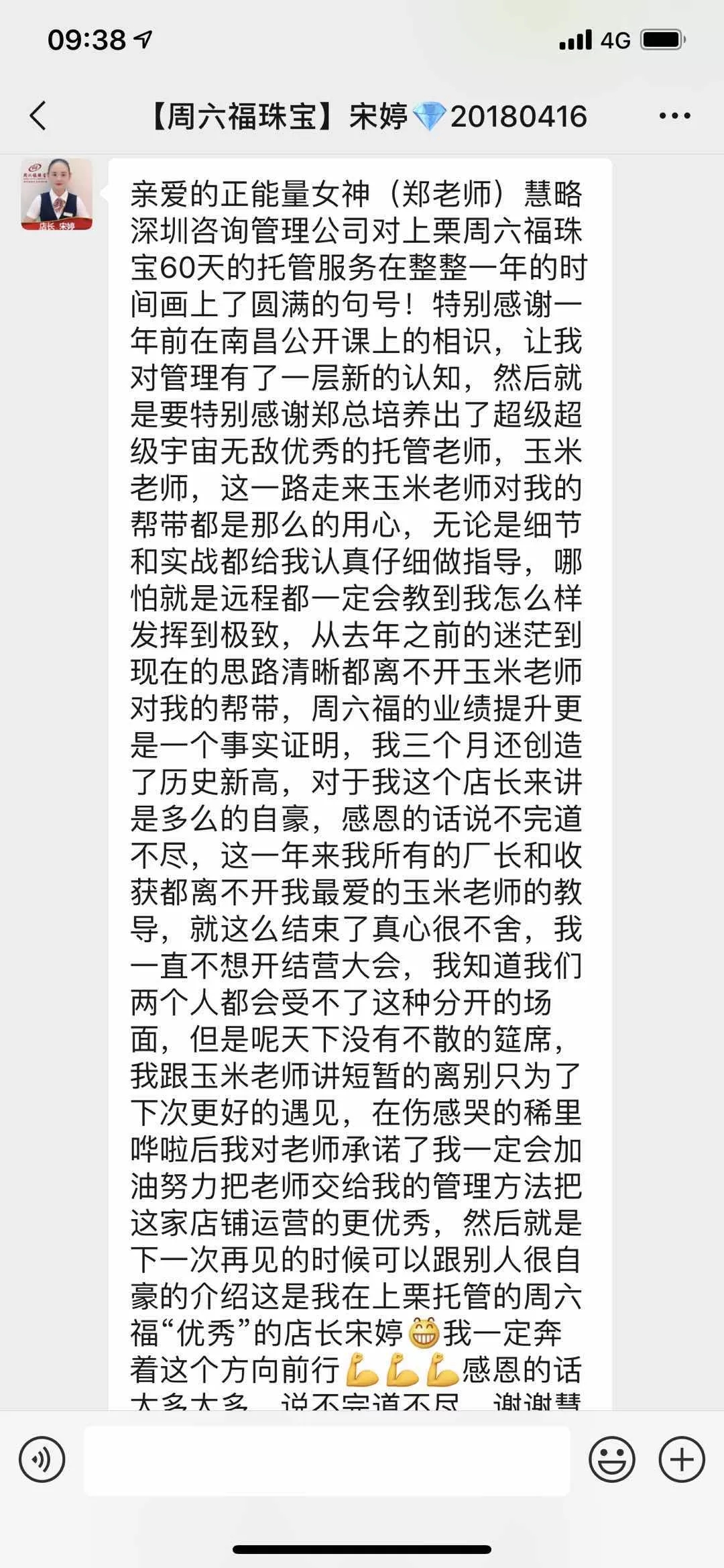 △江西周六福珠寶作(zuò)為(wèi)李豔玉老師(shī)手中産生(shēng)的成功案例中的一個(gè),得(de)到了店(diàn)員店(diàn)長的充分肯定△